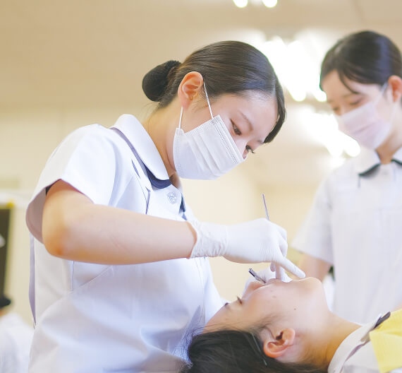生涯にわたってお口の健康を保ち患者様に寄り添う歯科衛生士。社会で必要とされる医療人に育てるため、即戦力として活躍できる“人財”へ育て上げ、県内外の歯科業界に多く輩出しています。
