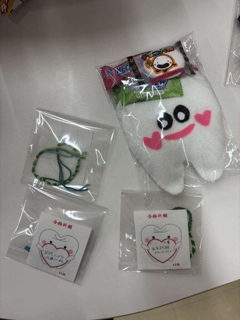 2026.02.20 国家試験へ向けて後輩からエールをいただきました📣🎶 歯科衛生士科 歯科衛生士科国家試験(3月1日)がいよいよ来週末となりました!! そんな歯科衛生士科3年生に1、2年生が激励として合格祈願の手作りのミサンガと羊毛フェルトのぬいぐるみ、 そしてお菓子の詰め合わせを用意してくれました💕 後輩たちの頑張れエールに先輩としてお手本になるよう最後まで力を尽くしていきましょう!!😊 ラストスパート!!職員一同、心から応援しています🍀 一覧へ戻る 前の記事へ 次の記事へ