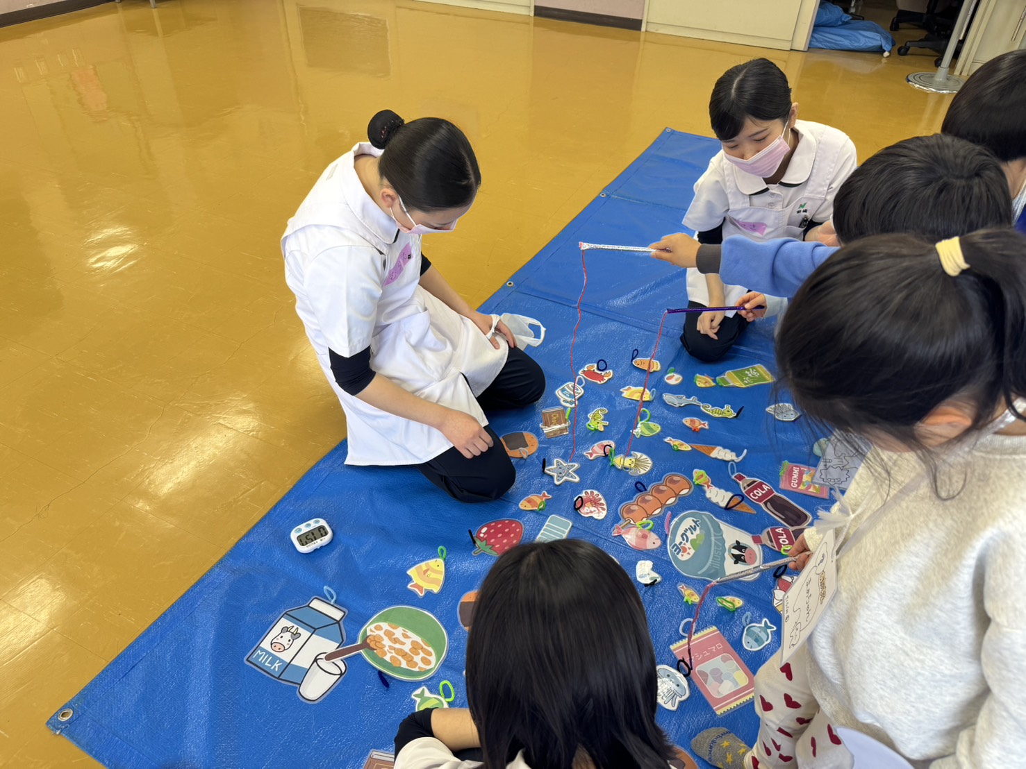最初はちょっぴり緊張していた園児たちも、ユニットに触ったり、ミニゲームをしたり、釣りゲームをしたり…大変盛り上がりました😆